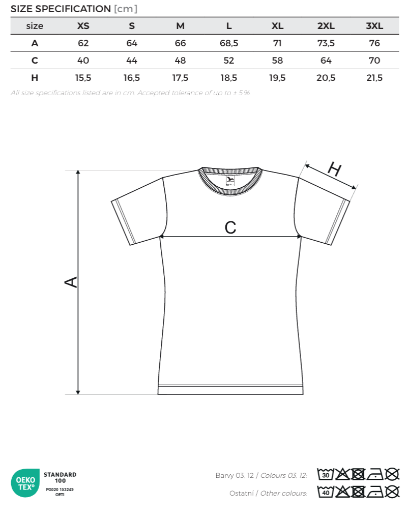 Single Jersey, 100 % bumbac (compoziţia culorii poate să fie diferită – culoarea 03 – 97 % bumbac, 3 % viscoza, culoarea 12 – 85 % bumbac şi 15 % vâscoză), finisaj cu silicon